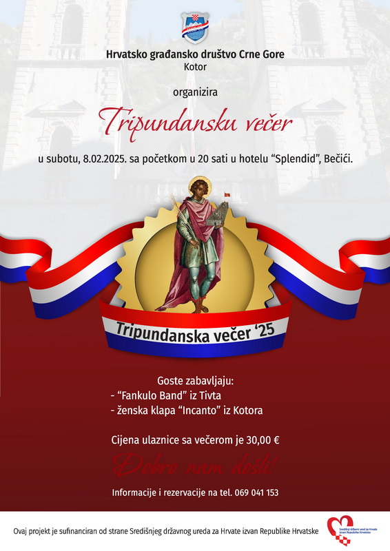 Hrvatsko građansko društvo Crne Gore, u povodu blagdana svetoga Tripuna, tradicionalno organizira Tripundansku večer.